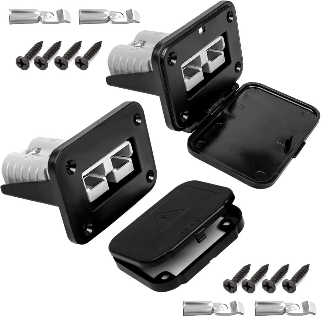Flush mount Anderson 50a Anderson plug connectors. I used one of these for the Solar input port and one of these for the power input port from the alternator.